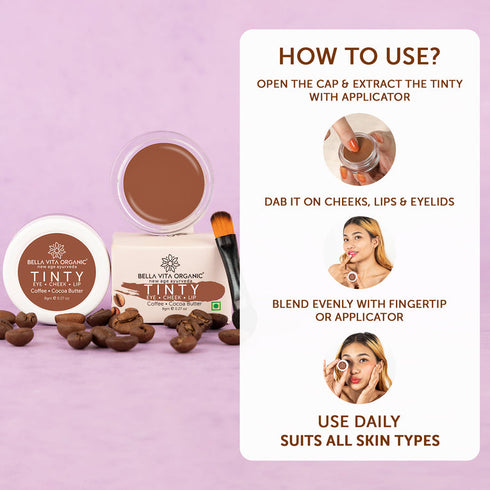 This 3 in 1 favorite is created with a blend of natural ingredients that have intense soothing and moisturizing properties giving you plush, plumper, and pinker lips, eyes, and cheeks! A triple-delivery formula, Tinty is free of harmful chemicals and lends a sheer tint to your eyes, lips and cheeks.