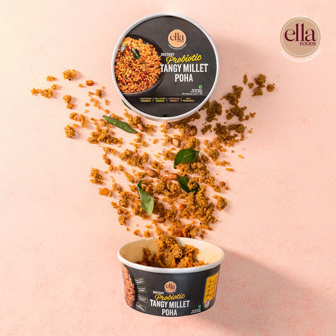 This delicious and nutritious Tangy Millet Poha is enhanced with pre and probiotics, providing a perfect start to your day. Enjoy the health benefits while indulging in the delightful taste!