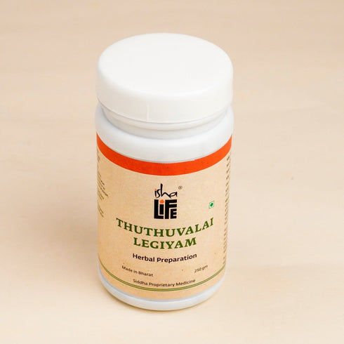 Isha Life Thuthuvalai Legium is a natural herbal formulation made from Thuthuvalai, known for its powerful respiratory and immunity-boosting properties. It helps support lung health, relieves cold and cough symptoms, and promotes overall wellness with natural ingredients.