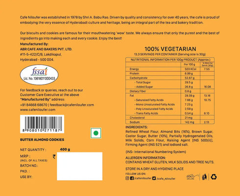 A delicious and buttery cookie with a rich flavor profile. These cookies are typically crunchy yet melt-in-your-mouth, with a distinct buttery taste complemented by the nutty flavor and texture of almonds. They are often a classic choice for a snack or an accompaniment to tea or coffee.