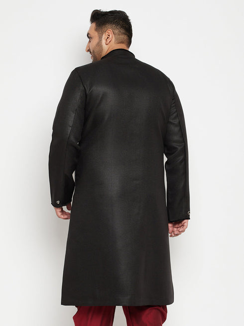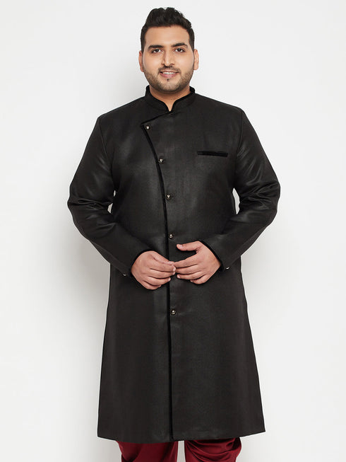 Vastramay Men's Plus Size Black Sherwani Only Top