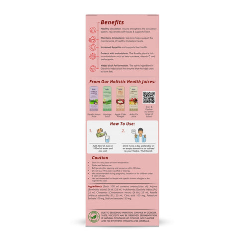 Sri Sri Tattva Arjuna Garcinia Juice is a herbal blend combining Arjuna and Garcinia extracts.