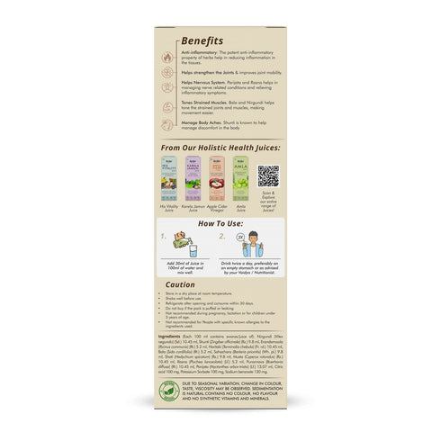 Sri Sri Tattva Artho Fix Juice is a herbal tonic formulated to support joint comfort and flexibility. Made from traditional botanicals, it helps maintain mobility, soothe stiffness, and support musculoskeletal wellness. Safe, natural care for joints.